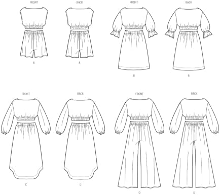 - Sewing pattern packet comes with sewing templates, fabric recommendations, pattern pieces, sizing guides, and instructions
