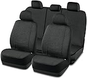 Road Comforts Car Seat Covers Full Set, Front and Split Rear Bench Seat Cover for Car, Universal Cloth Seat Protectors for SUV, Sedan, Van, Automotive Interior Covers Set, Airbag Compatible, Black