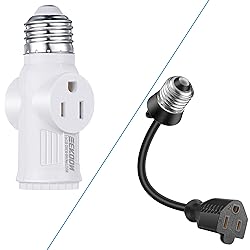 3 Prong Design Light Socket to Plug Adapter: the light socket adapter is 3 prong socket design, 3 prong socket can be applied in both 3 plug and 2 plug, a wider range of applications E26/E27 Light Socket Adapter: convert E26/E27 light bulb to 3 outlet socket adapter, good for adding a temporary outlet at a light socket in garage, basement, workshop, utility room, and more Electrical Ratings: E26/E27 socket outlet adapter voltage range: 0-125VAC, wattage: 1250W; This light bulb adapter is not suitable for use in wet locations Stable Material: the light bulb socket adapters are made of flame retardant PBT material, heat resistant and long lasting, this light socket plug attached with US standard Wide Application: this light socket adapter is designed for both indoor and outdoor use, supply power for low-power appliances in the courtyard, and is also a ideal way to add outlets for festival decorative lights