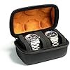 2 slot watch Roll Travel Case for men, Hard Zipper Organizer box for Large watch with anti-move watch pillow (Black 2slot microfiber lining)