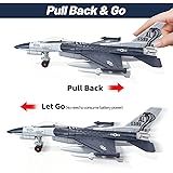 Fighter Jet, Diecast Metal Pull Back Airplane Toy with Flashing Lights and Sounds, Military Plane Model for 3-12 Years Old Boys Birthday Easter Gifts (Holder Included)