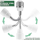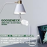 Flexible Goose Neck Connector: With a 6-inch extension iron goose neck connector makes it easy to plug in any direction,you can use it in tight spaces or hard-to-reach areas With a 3-prong design, the adapter can be used with both 2-prong and 3-prong plug, making it more convenient than other adapters that require a grounding adapter Perfect for Indoor/Outdoor Use: the light receptacle is suitable for both indoor and outdoor (covered from porch/flood light fixture) use, making it ideal for powering front door cameras, holiday lights, and more WIDE APPLICATION - Great way to plug in security camera into front door light socket/ porch light socket ;connect shop lights to an existing bulb socket;add outlets for Christmas LED string lights;install strip lights/T5 LED Light with an AC plug; Perfet for adding a temporary outlet at a light socket in garage,basement,workshop,utility room etc Serviceable PBT materials that are flame-retardant and reduce heat release,the outlet receptacle carries wattage up to 0-660W.