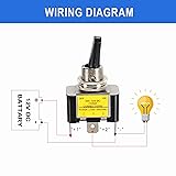 Product Name: LED Toggle switch; Type: Latching ON OFF SPST 3P; Rating: 12V 30A DC;LED Color: Blue High Quality: Bakelite Housing makes the Switch Durable and Shiny; Longer and thicker terminals can fix the cables more easily and tightly Installation: Mounting hole size is 0.47 inches (12MM);Each switch is equipped with 3pcs female terminals for easy wiring Application: Widely used in electric equipments inside and outside Auto Car Marine Boat, such as lights, chassis lamp, fog lamps, dome light, etc. Package Included: 2PCS LED toggle switch + 6PCS Terminal; Mechanical life: more than 500,000 cycles; Electrical life: more than 10,000 cycles