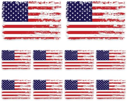 Stickios American Flag Decals - Distressed Patriotic Vinyl Bumper Stickers for Cars, Trucks, Helmets & Vehicle Windows - Made in USA - Variety Pack (8 Small, 2 Medium) - SSB10