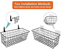 🍎【Sturdy wire baskets that can hold 40 pounds】 These baskets are made of durable steel wire with durable anti-rust and anti-corrosion coating, as well as wall-mounted hardware and hooks, which can hold 40 pounds. (Note: If you use non-marking paste instead of screws, the basket can hold 10 pounds) 🍊【Make good use of the remaining wall】can be used on any wall in the home, such as storage rooms, cabinet door, kitchens, bathrooms, bedrooms, RV, courtyards, doorways, garages, offices, etc. These wall hanging baskets can support various items without being bent by weight, such as fruits, vegetables, snacks, spice jars, books, folders, magazines, bathroom accessories, toiletries, tools, etc. 🥦【Necessary for home storage】 a wall-mounted basket for home storage enthusiasts. It has 3 designs that can give full play to your creativity and place items like artworks. 🥕【Complete installation materials】 The kit is equipped with basic installation materials and 6 non-marking adhesive stickers, and installation can be completed without additional installation materials. 🍒【No Risk Guarantee】 We are proud of providing quality products and customer service. If you have any questions, please let us know, and we will try our best to make things right.