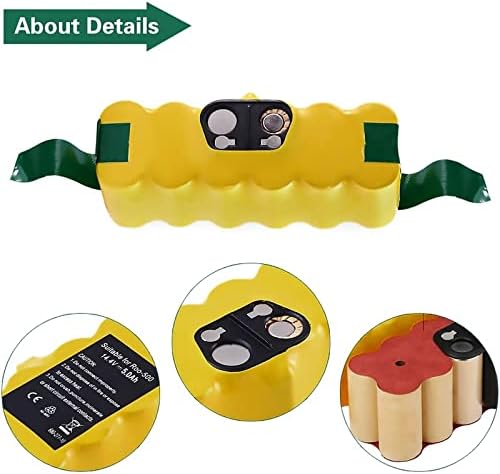 - 【Battery Feature】Battery Type: Rechargeable Ni-Mh Battery | Capacity: 5000mAh | Voltage: 14.4V. The battery size and the function is same with the original battery, perfect replace for original roomba battery. Upgraded 5000mAh provide longer run time and excellent working performance
