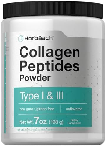 Polvo de Péptidos de Colágeno Horbäach 7oz | Tipo I y III | Sin sabor | Proteína y Aminoácidos Multi Colágeno | Sin gluten, apto para Keto y Paleo