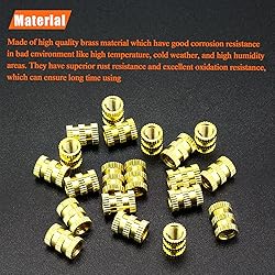 - Specifications: Material: Brass Color: Brass Tone Size: M5x10x7mm Quantity: 100 Pieces Product Type: Female Knurled Nut Inserts Features: 1, Premium brass material, heat resistant, wear-resistant, acid-resistant rust-proof, non-toxic, high strength and hardness, strong and durable for long time use. 2, The internal thread knurled nut is suitable for installing into a tapered hole by heating or forming in the injection molding process to achieve the greatest possible close fit and improve the product use effect. 3, Widely used for 3D printing injection molding projects, mobile phones, laptops, various plastic casings, communications, micro-motors, computers, electrical appliances, electronics, toys, watches, lighting, locomotives, etc. Package included: 100 Pieces M5x10x7mm Female Thread Brass Knurled Nut Inserts Embedment Nuts.