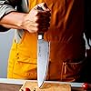 - DISEÑO PERFECTOMENTE EQUILIBRADO Y LIGERO: La combinación de acero damasco y madera maciza negra crea este cuchillo de cocina lujoso y bien equilibrado. El cuchillo maestro de 8 pulgadas puede usarse con la mano izquierda o derecha, y el diseño ligero es especialmente adecuado para mujeres. Puedes manejar fácilmente alimentos de cocina para cortar, picar, rebanar y trocear, como sushi, frutas, verduras, carne, pescado, pollo y ternera, etc