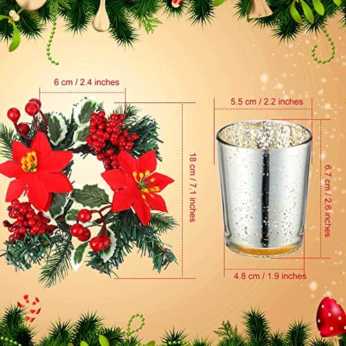 - Proper Dimension to Apply: the size of these Christmas glass candle holders is about 6.7 cm/ 2.6 inches in height, 4.8 cm/ 1.9 inches in bottom diameter, 5.5 cm/ 2.2 inches in upper diameter, the Christmas candle rings are about 18 cm/ 7.1 inches in diameter, and the inner diameter is about 6 cm/ 2.4 inches, appropriate and easy for you to use