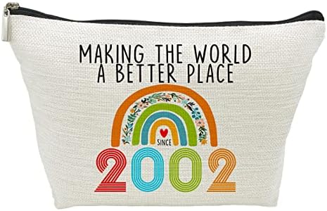 - A FUNNY AND TIMELESS GIFT FOR WOMEN: These personalized milestone makeup bags are the perfect gift for the next 21 year old birthday party, forty wedding anniversary or 2002 class reunion. They can be used for many years to come and will not fade or scratch off because they are permanently imprinted which reads Is Making The World a Better Place Since 2002.