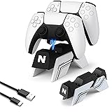 - NiTHO PS5/PS5 Edge Charging Station – Fast, Safe & Stylish Dual-Slot Fast Charging – Dual port usb wall charger charge two PS5 controllers simultaneously in just 3 hours, freeing up your console’s USB ports for a clutter-free setup. Snap & Charge Design – PS5 charging station easy slide-in docking with LED charging indicators for instant status check. No fuss, just plug and play. Advanced Safety Protection – Playstation 5 controller charger built-in safeguards against overcurrent, overvoltage, and overheating for worry-free charging. Universal Compatibility – PS5 controller charger station works with PS5 & PS5 Edge controllers, powered by your console, PC, or any USB adapter (includes USB-C cable). PS5-Matched Aesthetics – PS5 charger station sleek black & white design seamlessly blends with your PS5 setup. Upgrade your playstation 5 accessories gaming station – Effortless charging, anytime!