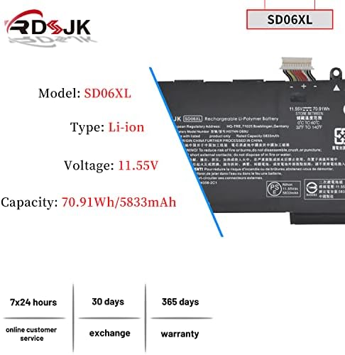 SD06XL Laptop Battery for HP Omen 15-EK 15-EK0000 15-EN 15-EN0000 15-EK0051TX 15-EK0009TX 15-EN0029NR 15-EN0036NR Series SD06070XL HSTNN-DB9U L84356-2C1 L84392-005 L84392-006 L84357-AC1 11.55V 70.91Wh