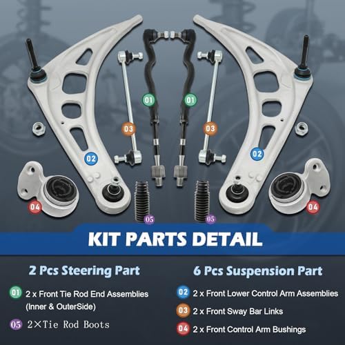 Front Suspension Kit E46 Lower Control Arm E46 Tie Rod Ends Sway Bar Links Pinion Bellow Boots Steering Kit Compatible with 1999-2006 318i 320i 323Ci 328i 328Ci 323i 325i 325Ci 330i 330Ci