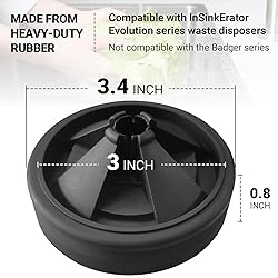 SPECIFIC DESIGN: Compatible with InSinkErator Evolution series waste disposers, these splash guards are not compatible with the Badger series. They're akin to Part Sink Baffle QCB-AM, boasting a 3 3/8" diameter. ENHANCED FUNCTIONALITY: Our upgraded quiet collar sink baffle boasts exceptional pliability, effortlessly opening under water pressure. Effectively minimizing splashes, it diminishes garbage processor noise, ensuring a quieter kitchen environment. DURABLE CONSTRUCTION: Crafted from durable silicone, these garbage disposal splash guards offer heightened heat, oil, and abrasion resistance, promising an extended service life. Featuring a drain hole design, they facilitate smooth water flow, catering to various kitchen tasks. VALUE PACK: Each package contains 2 Removable QCB-AM Quiet Collar Sink Baffle 3 3/8" splash guard garbage stoppers, providing cost-effective convenience. Easily replaceable, dishwasher-safe, and effortlessly cleanable with water, they're a practical choice for any household. CONFIDENCE IN PURCHASE: We prioritize delivering a hassle-free shopping experience. Backed by our commitment to quality and customer satisfaction, we're dedicated to resolving any issues promptly. Contact our customer service team for timely assistance with any quality concerns.