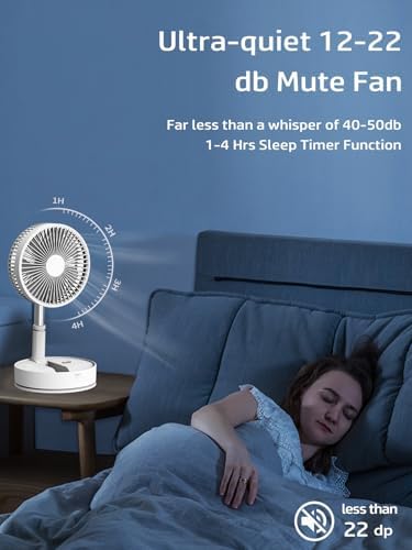 UN UNITEDTIME Oscillating Fan with Remote Control, 7200mAh Rechargeable Battery Operated Travel for Camping, 4 Speed, Timer, Height Adjustment Portable Foldable Fan for Travel, Outdoor, Home (White)
