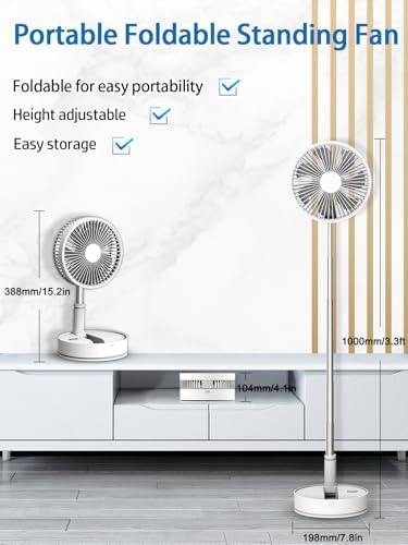 • 【8-Inch Foldaway Standing & Table Fan】unique folding design, Folded Height 3.7X8 inches and weighing 980 g. Adjustable Height from 14.2 inch to 3.3ft, from small table fan to Air Circulator floor fan,but still portable for home and office, laptop, gym workout, car backseat, outdoors, camping, trips and anywhere need cool wind