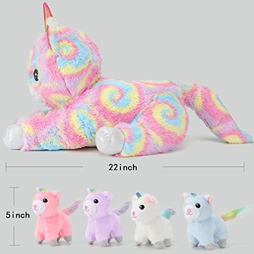 Muñeca de felpa de unicornio de 22 pulgadas para niñas, mamá gata de felpa con 4 juguetes bebé gatito, juego de regalos sorpresa 5 en 1