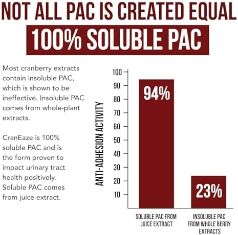 - 100% SOLUBLE PAC, MOST EFFECTIVE FORM | A cranberry supplement must contain 100% soluble PAC to be effective; most are not. Soluble PAC comes from juice extract.