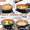 • VERSATILE - Set includes 11 Inch / 5 Quart Nonstick Wok With Lid, Deep Frying Basket, & Roasting Steaming Rack. The 5 quart ceramic wok pan is the optimal size for day-to-day cooking. The high quality glass lid is heat and shatter resistant which prevents splatters, seals in the flavor and nutrients for a healthier and better tasting food. The frying basket of wok allows for the easy placement or removal of food from hot water or oil. The roasting rack comes in handy for roasting delicious meals