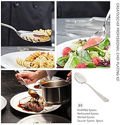 【Unleash your culinary creativity】Unleash your creativity in the kitchen with our precision plating tool kit. Whether you’re a pro chef or just love cooking at home, this awesome culinary tool set will help bring your food dreams to life. 【10 Professional Plating Tool】Our culinary plating tool set includes 1 x 8" straight tweezers,1 x 8" curved tweezers,1 x 8" curved pointed tweezers,1 x 8" tasting spoon & tweezers,1 x 8" offset spatula,1 x 4.7" fish bone tweezers,1 x 8" perforated bowl,1 x 8" solid bowl,1 x 9" slotted bowl,1 x 9" petite saucier spoon. 【Professional Quality】Made from food grade stainless steel, these plating tools are healthy, safe and rust-resistant. The ergonomic design allows for precision and control. Ideal for professional chefs and passionate home cooks. 【Elevate the dining experience】Elevate your dining experience with the CREATIVECHEF Professional Chef Plating Kit. Whether hosting a dinner party or adding elegance to everyday meals, this kit helps create visually stunning dishes. Impress guests and yourself with restaurant-level plating techniques, bringing a touch of sophistication to your kitchen. 【Great Gift】This plating tools culinary professional set is a thoughtful gift for food lovers, aspiring chefs, or anyone who appreciates culinary presentation. Its attractive packaging and comprehensive range of tools make it an impressive and functional gift option for special occasions.