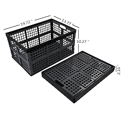 Rinboat 42 Liter Plastic Collapsible Storage Crate, Stacking folding crate, 4 Pack