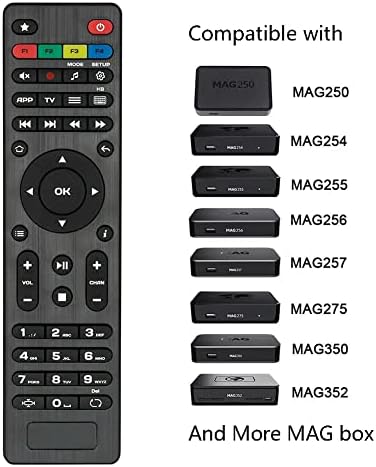 This is a remote control replacement for MAG250 MAG254 MAG256 MAG257 MAG260 MAG261 MAG270 MAG275 MAG322 MAG324 MAG349 MAG350 MAG351 MAG352 MAG410 MAG420 MAG424 MAG520 MAG524 MAG256W1 MAG256W2 MAG254W1 MAG254W2 MAG324w2 MAG352w1 MAG352w2 MAG424w3 MAG420w1 MAG420w3 MAG422w3 MAG520w3 MAG524w3 MAG Linux OTT Tv Box. Compatible with IPTV Linux Set-Top Box MAG 250 254 255 256 257 260 261 270 275 322 324 349 350 351 352 410 420 424 520 524 256W1 256W2 254W1 254W2 324w2 352w1 352w2 424w3 420w1 420w3 422w3 520w3 524w3, and More MAG Models! Powered by 2 * AAA batteries(NOT included), you can use it directly after battery installation. No programming or setting required! Premium Material: This Mag remote controller is made of proper ABS material, wearable and durable. AfterSales(18-months FREEwarranty): If you have any problems with the remote you received, don't worry, please feel free toContact us, we will solve it as soon as possible!
