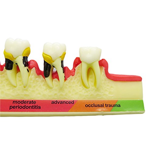 - Periodontal disease demonstration model for visual demonstration of gingivitis and alveolar resorption in a series of 5 stages-Normal gingivitis,Early,moderate periodontitis,Advanced,Occlusal trauma