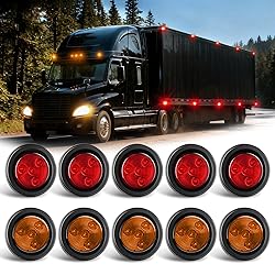 - Specifications: Overall dimension: 2.6” in diameter Light dimension: 1.8” in diameter Hole size: 2.2” in in diameter LED Quantity: 4PCS each light LED Color: Red, Amber Working Voltage: 12V DC Waterproof rate: IP65 Package Include: 5PCS Amber and 5PCS Red Round LED Marker Lights