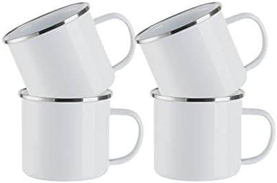 Craft Express 17 OZ Sublimation Enamel Mugs White-Camping Coffee Mugs with Stainless Steel Rim-Perfect for Tumbler Mug Heat Press Oven Crafting-Set of 4