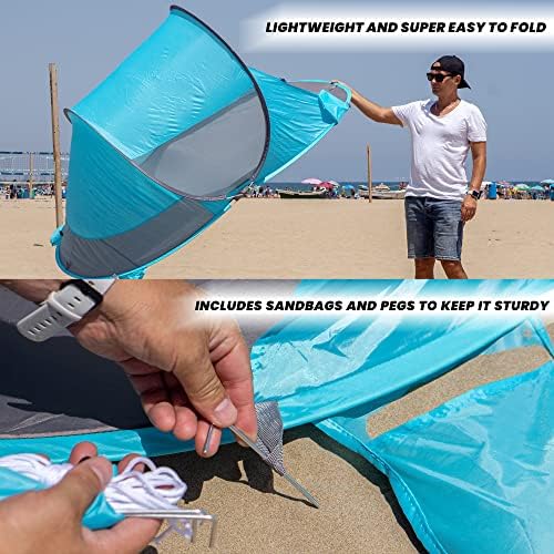 Beach Tent Pop Up Large Instant Set Up Zento Deals- 3-4 Person Sun Shade Shelter with UV Protection - Tent with Carry Bag for Outdoor Activities - Easy Setup Windproof Waterproof Beach Canopy Cabana
