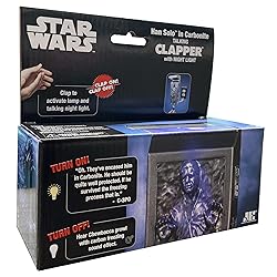 - It's the Han Solo in Carbonite Talking Clapper with Night Light, the original Clapper with a Han Solo twist! Hibernating Han Solo will turn on your appliance with two claps. Clap 3 times to turn on the freezing blue night light and hear quotes from the movie. Listen to C-3PO say, “Oh. They’ve encased him in Carbonite. He should be quite well protected. If he survived the freezing Process that is.” when the night light is turned on and hear Chewbacca growl with carbon freezing sound effects when it's turned off. Beautifully detailed, The Han Solo in Carbonite Talking Clapper with Night Light is sure to be your favorite decoration.