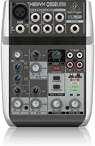 The ultra-compact XENYX Q502USB mixer’s 5 Inputs (1 mic, 2 stereo) allow you to effortlessly achieve premium- quality sound, thanks to its onboard studio-grade XENYX Mic Preamp and ultra-musical “British” channel EQ. And our easy-to-use “one-knob” compressor provides total dynamic control for the ultimate in punch and clarity, while respecting all the power and emotion you pack into every note. Add to this, the sweet forgiveness of our British-style EQ and superb ease of use – and the Q502USB becomes an incredibly versatile mixer for your live performances. But the XENYX Q502USB isn’t just designed to handle your live gigs; it also provides the state-of-the-art tools you need to make stunning, professional-quality recordings. Along with its built-in USB/audio interface, the Q502USB mixer comes with all the recording and editing software needed to turn your computer system into your own personal high-performance home recording studio. Power supply not included