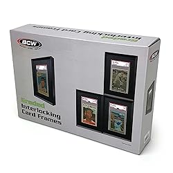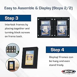 Precise Dimensions: The exterior frame measures 5 x 7 x 1 inches, offering robust protection while maintaining a sleek aesthetic. The precise dimensions include an interior window measuring 2 7/8 x 4 7/8 inches for showcasing your cards. Customizable: The interlocking technology allows you to attach them to each other vertically or horizontally to create your own case - or use as individual frames - or both! The user-friendly design makes it easy to switch it up whenever you want. Optimal Card Protection: Each card display frame is sized to hold graded card slabs up to 3 7/16 x 5 1/2 inches. Cards are held in these frames by inserting the graded slab in the recess in the back of the frame. Seamless Interlocking System: Effortlessly connect frames with the simple turn of two screws, allowing you to create captivating grid layouts for displaying multiple cards in a cohesive arrangement. Each box comes with a set of 4 frames for display. Wide Range of Applications: This wall frame is perfect for displaying graded baseball, football, basketball, hockey, soccer, Magic, Pokemon, and other collectible cards, these frames provide a sophisticated backdrop for showcasing your prized collection.
