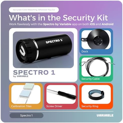 - COMPLETE KIT WITH DOCK, SECURITY & ACCESSORIES: This portable color reader includes a dock, security kit, charging cable, and carrying pouch for convenient storage and consistent performance. Its compact, lightweight, and durable design ensures easy portability for professionals while maintaining precise and accurate color scanning capability.