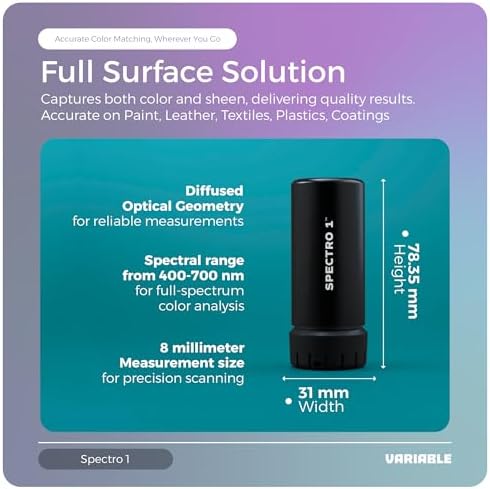 - EASY TO USE: Connect your Spectro 1 spectrophotometer seamlessly via wireless technology to the Spectro by Variable App, available on iOS and Android. This powerful integration gives you direct access to thousands of fan decks, raw color values, and color data, making this color matching tool simple and convenient to use anytime, anywhere.