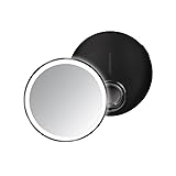 simplehuman Sensor Mirror, Lighted Compact Makeup Magnifying Mirror with Light, Round, Travel Size, Black Stainless Steel