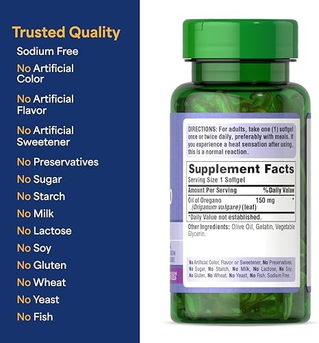 Puritan's Pride Oil of Oregano offers goodness from Mother Nature, delivering the traditional benefits of this revered herb.* Each softgel provides a potent 150 mg of Oil of Oregano, making it easy to incorporate into your daily health routine. With a generous 90-180 day supply of rapid release softgels, you can enjoy traditional support for your general health needs.* *These statements have not been evaluated by the Food and Drug Administration. This product is not intended to diagnose, treat, cure or prevent any disease.