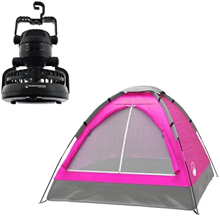 Wakeman Tents 2-Person Tent with Removable Rain Fly and Carry Bag - Comes with Camping Lantern with Fan - Weather-Resistant Camping Accessories by Wakeman