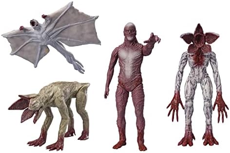 - Pack de 4 piezas con figuras de acción de Demogorgon, Demodog, Demobat y Vecna. Imagina meterte al revés y luchar contra las aterradoras criaturas de Stranger Things de Netflix. Este paquete exclusivo de Amazon incluye a Vecna, el nuevo e icónico villano de la última temporada de Stranger Things