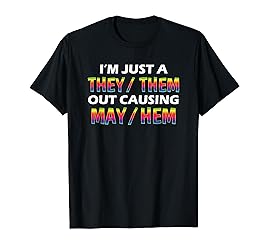 - They Them Out Causing Mayhem | Funny Non Binary Them They Out Causing Mayhem | Funny non binary themed they them pronoun design. I'm just a they / them out causing mayhem. Funny, rainbow pride themed inclusion design is perfect for pride month.