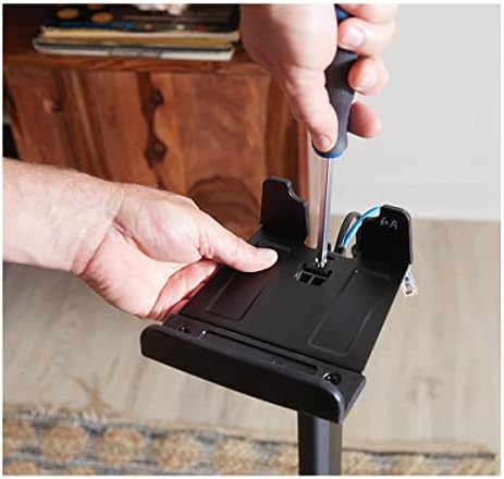 Designed to hold the Sonos Five or Sonos PLAY:5 in either vertical or horizontal orientation the anodized aluminum design of the SANUS WSS52 places your speaker at optimal listening height while perfectly complementing the modern look of the Sonos Five and Sonos PLAY:5. Available in black or white to match the Sonos Five and as a single stand the WSS52 fashionably delivers optimum performance no matter your unique setup needs ambient listening stereo pairing or surround sound. The updated design features securement brackets designed to hold the Sonos Five in vertical and horizontal orientations. For a seamless look free of pesky cables Sanus's own Press Fit cable management technology secures cords down the back of the stand for complete concealment.