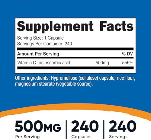 Nutricost Vitamin C 500mg, 240 Cápsulas, Vegetariano, Sin Gluten y No OGM
