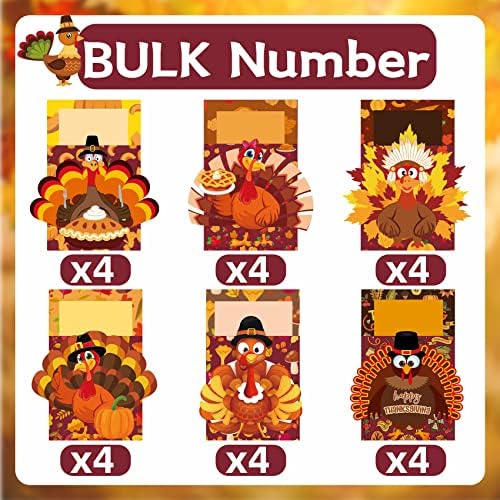 - TURKEY THANKSGIVING CUTLERY HOLDER: This Thanksgiving cutlery set comes with 24 pcs turkey utensil holders. Every turkey holder is 7.48×4.72’’ with 6 different styles. These vibrant turkey setting holders will add joy to your dinner tables.