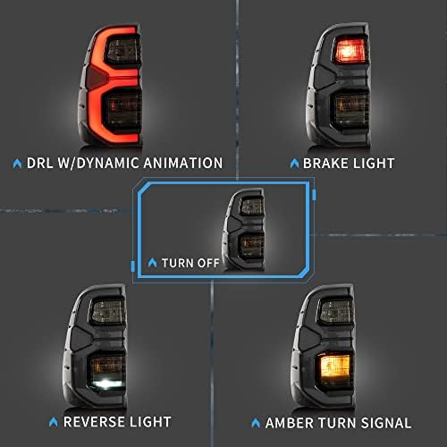 - 💡 Features - Smoke Lens. Red brake light and running light w/Animation+Amber turning light+White reverse light+Come with pairs including passenger side and driver side.