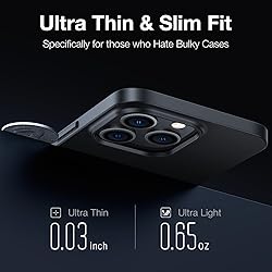 🌹ATTENTION: ONLY for iPhone 14 PRO MAX, 6.7'', 3 cameras. ✨[Ultra-Thin & Sturdy] At only 0.03 inches and 0.65 oz weight, this is the thinnest TORRAS iPhone 14 Pro Max case. This iPhone 14 Pro Max case slim is lightweight and easy to slide in and out of your pocket, while the minimalist design is easy to hold, doesn't add bulk and maintains the classic iPhone shape. Even if you spend long hours using your phone, the comfortable design of this iPhone 14 Pro Max phone case will help you avoid wrist pain. ✨[Velvety Feel & Matte Surface] Advanced nano-coating offers a soft yet sturdy touch, making your iPhone 14 Pro Max easy to hold in one hand without losing grip. Unlike silicone cases, the matte black iPhone 14 Pro Max phone case resists fingerprints, scratches, lint, and even pet hair. All you will see is an elegant matte surface. ✨[Enhanced Screen & Camera Protection] No need to worry about accidental drops, dents, or scratches. The 1.0mm raised screen edges and 1.2mm raised camera bezels to deliver edge-to-edge protection to give you peace of mind all day, every day. ✨[Snug Fit & Precise Buttons] Tailored for the iPhone 14 Pro Max , this slim iPhone 14 Pro Max cases hug your iPhone 14 Pro Max without loosening and protects it at all times. The snug fit and precise cutouts allow you to easily click buttons and charge wirelessly. Waking up Si--ri is a breeze with this iPhone 14 Pro Max case minimalist design. ✨[Compatibility & Specialized Support] Enjoy premium customer service with the TORRAS iPhone 14 Pro Max cases. This ultra-thin iPhone 14 Pro Max case design has been precisely matched to fit Phone 14 Pro Max and works perfectly with a wireless charger. Always at your service.
