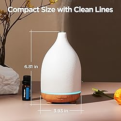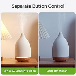 Polypropylene Premium Ceramic Diffuser: This stone diffuser has a handmade ceramic cover that is sturdy and durable, as well as an excellent surface performance of dirt resistance and ease of cleaning. The unique and elegant style also make it complements any decor scheme. And the tank is made of high-quality PP material, which assures mist safety. 2 Misting Modes: You can set the mist to continuous mode (Duration: 4-6H), suitable for reading, working, etc. Or set it to intermittent mode (Duration: 8-10H). It's perfect for sleeping, ensuring all night's humidification and fragrance, and freeing you the trouble of adding water at midnight. Independent LED Light: The essential oil diffuser has an independent mist and light feature so you don't have to worry about the light keeping you up while you enjoy the essential oil mist overnight. Or you can just use it as a night light to create romantic ambiance. Thoughtful Design: Featuring a safe auto-off function, this aromatherapy diffuser will automatically power off when water runs out. The chimney shape outlet ensures a high mist stream, leaving no vapor on your loved furniture. Built with a noise-reducing inner lid, it effectively reduces water dripping noise when running. Great Gift Idea: As a multifunctional home device, InnoGear ceramic oil diffuser is not only perfect for aromatherapy relaxation but also can be used as a humidifier, a night light, or even a piece of home decor. It could be a thoughtful gift idea for your family, friends, and loved ones for holidays, Thanksgiving, Christmas, and any other occasion.