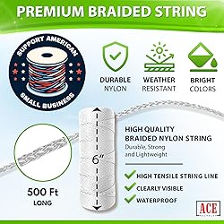 Strong string - This thick string is made of high quality nylon, which is stronger than polypropylene twine. The braided design allows this marking rope to hold up through the harshest conditions! Braided, not twisted - Braided nylon mason line is superior to nylon twisted cord because twisted nylon twine will unravel after being cut. Braided mason line won't fray or unravel when tying knots. Easy to use - Ideal for use with string line level or for any commercial twine heavy duty outdoor projects. Use as plumb line, or with surveyors plumb bob with string, or with a masonry line holder. Garden string - This white string is perfect for use in the garden. Use it as tomato twine string to tie up tomato plants, or for wick watering african violets, or general landscaping twine. Bright colors - Each braided masonry line roll is fluorescent and easy to see. Perfect outdoor string for use as landscape twine, property line markers, construction twine, or marker string.