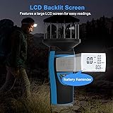 Measures Wind from Any Directions: Our 878 cup anemometer has 3 sensitive wind cups, which can accurately and automatically sense the wind from 360 degrees. Unlike the normal vane anemometers need to manually adjust the position of the device for accurate measurement; With Compass Ideal for Outdoor Activities: The compass on the top can guide the way when Sailing, climbing, hiking, etc. You can also mount it on a tripod to free your hands. In addition, the cup is protected by a metal fence, which is not afraid to be broken outdoors; Large Wind Speed Measurement Range: This Handheld anemometer 878 has a large wind speed measurement range of 1.5~93mph, wind speed accuracy of +/- 4%. And there are 12 levels of wind speed reminders to deal with more outdoor situations; Multifunctional Measurement: This cup anemometer has units of switching(m/s, km/h, knots, mph), real-time MAX/MIN and average display, battery reminder, auto off, backlight, data hold function, helps you to measure the wind velocity more conveniently; Wide Applications: This handheld wind meter is ideal for outdoor activities like sailing, surfing, drone flying, kite flying, boating, frisbee, golf, shooting, and more. Use it to determine local weather conditions and assess wind speed's potential impact on your activities; Application of CFM Calculation: It can also assist in measuring cfm, just use our precision anemometer to measure the wind speed, and then multiply with the vent area to get the CFM. (Air Flow in CFM =Wind speed x Duct Cross Sectional Area);