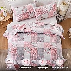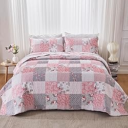 【Material】Shell:100% microfiber | Fill:100% microfiber. Using soft light fabric, comfortable and lightweight bedspread set, good choice for all year round. This quilt set is reversible, both sides could be used individually. Coverlet set Includes: 1 Bedspread + 2 Pillow Cases. 【Full/Queen Size】Quilt: 87" x 95", 2 Pillowcase: 20" x 28". It can be used as the quilt, bedspread and coverlet all season to keep warm, good choice for travel and gift.It can stand alone on your bed or act as a great layering piece creating a lively atmosphere for your room. 【Floral Patchwork Design】A combination of floral and paisley prints further embellish the vintage washed patchwork design making it more beautiful. Charming and elegant, the vintage washed patchwork quilt set makes a good centerpiece for your bedroom décor. 【Four Seasons & Two Functional Quilt】 The Queen Size Quilt Set is can be directly covered as a quilt or blanket in Spring & Summer,also can be used as thick bed sheets / bedspreads in Autumn & Winter. Enjoy it in the bedroom, guest room, kids room, RV, vacation home,etc.. 【Easy Care】The quilted bedspread set which makes the stitching smooth, fine, and compact, which prevents it from falling apart over time and ensures it washes well. Machine wash, tumble-dry low or sun dry. No Chlorine bleach or any additives.